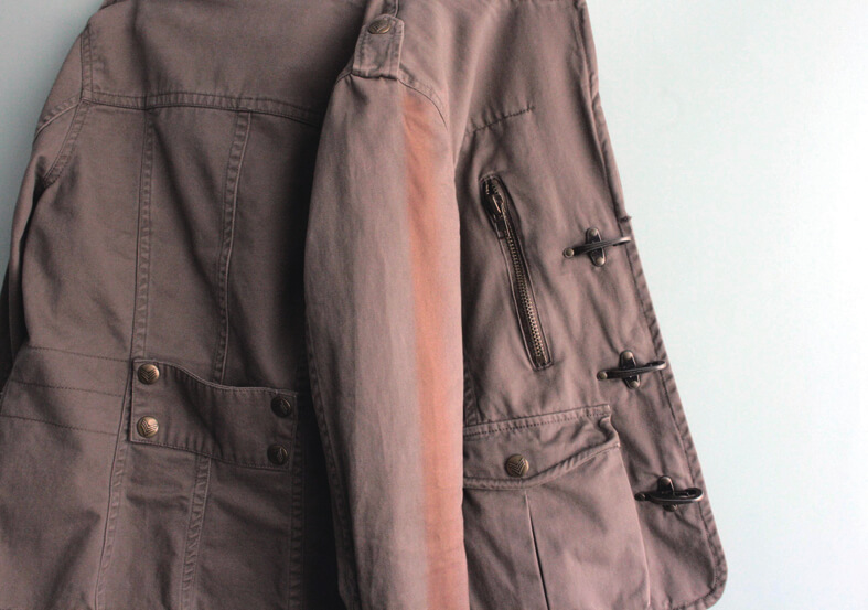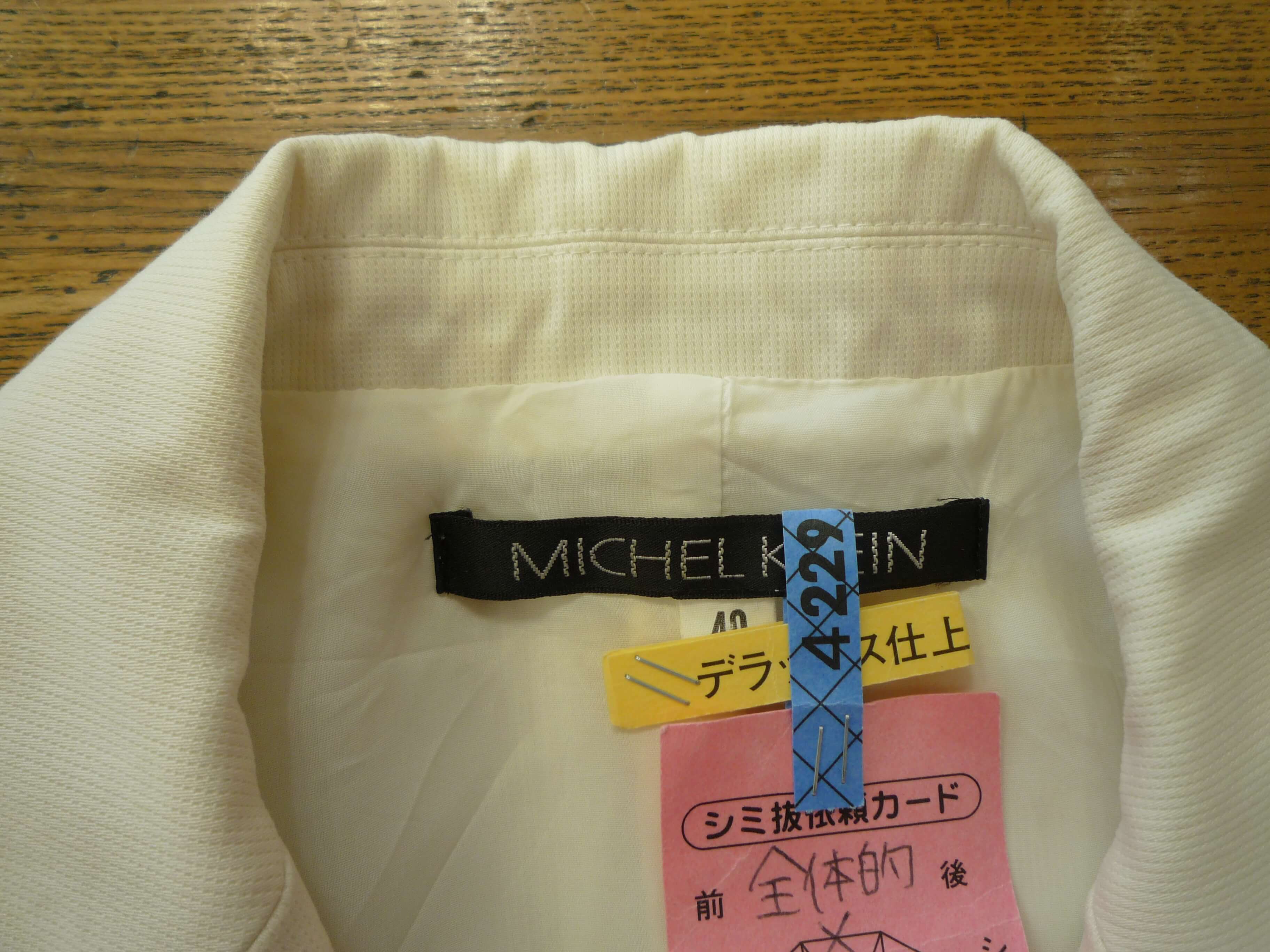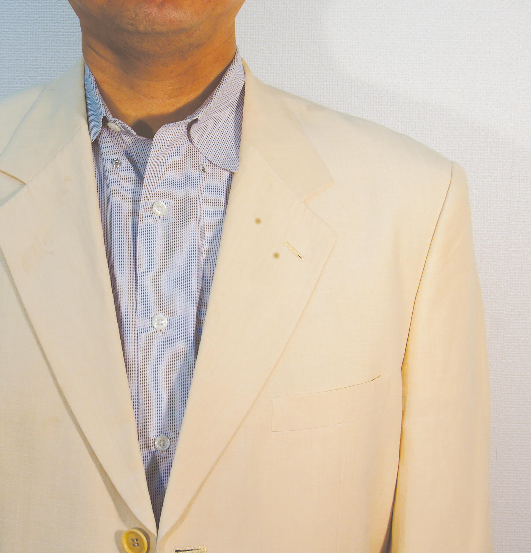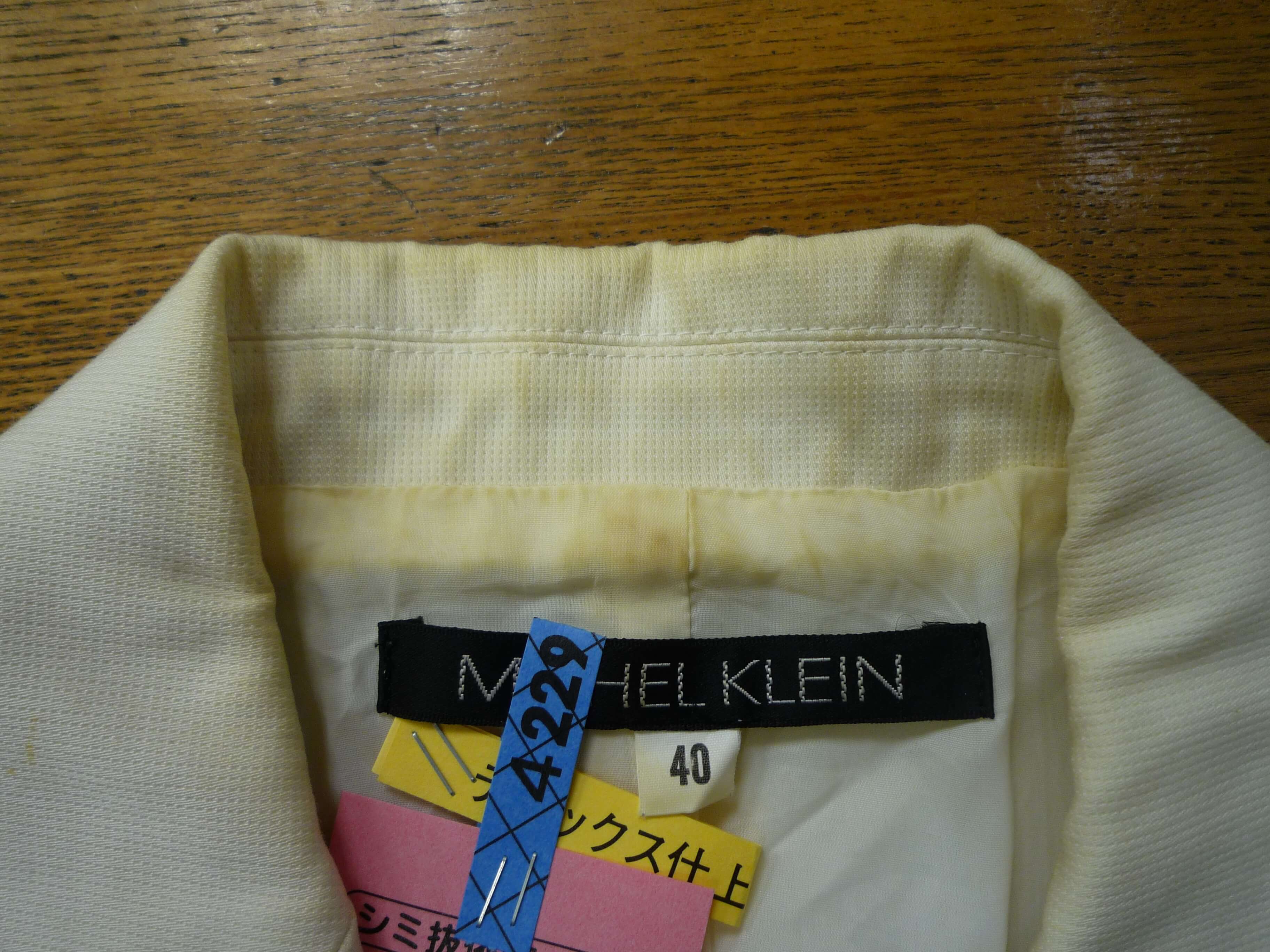 夏物のジャケット。着用してそのままクローゼットに保管。半年後着ようと思ったら、黄ばみがひどくワールドにご相談されました。