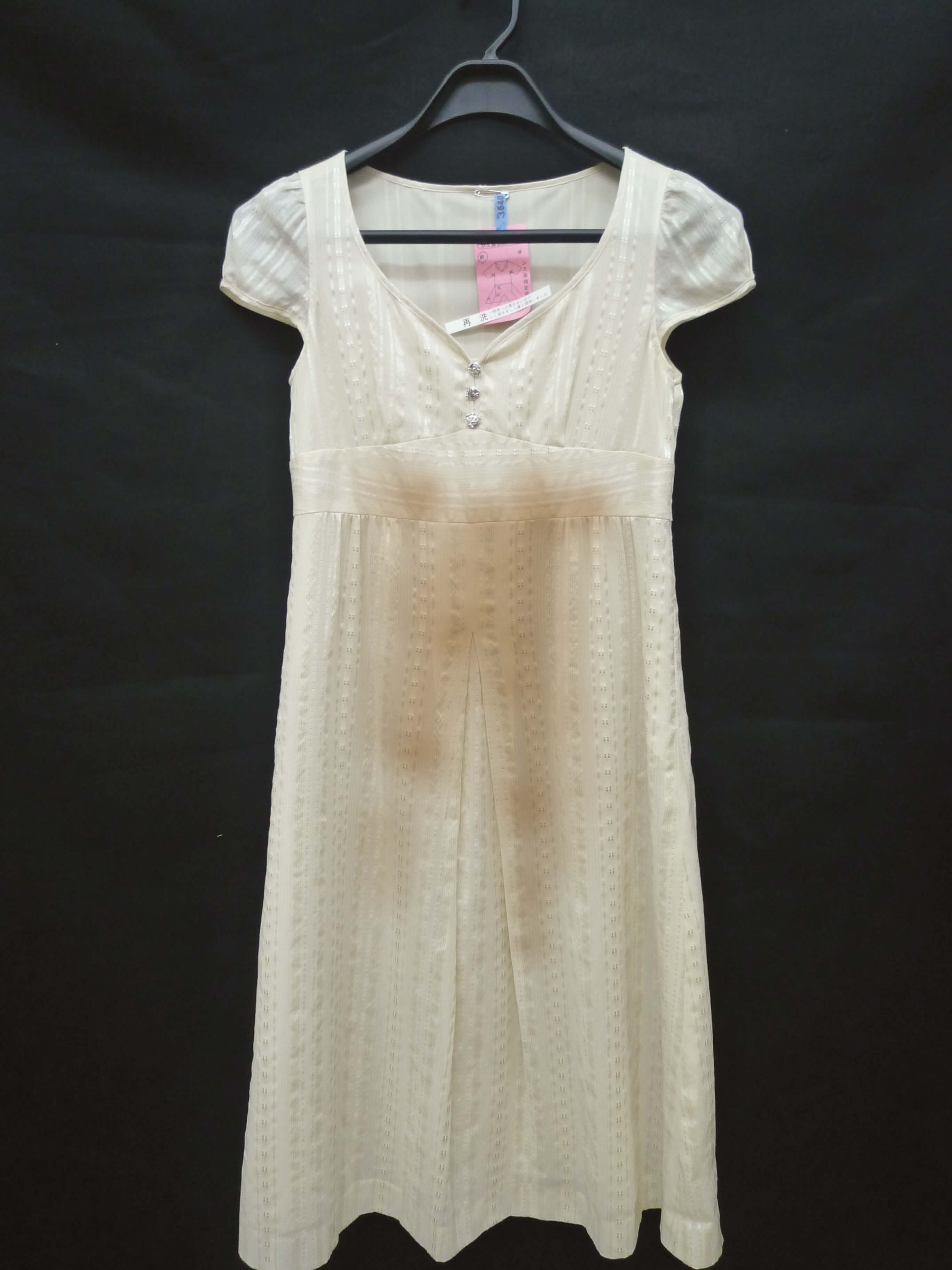 カフェショップでコーヒーをこぼされたワンピースです。全体的に汚れてしまいました。