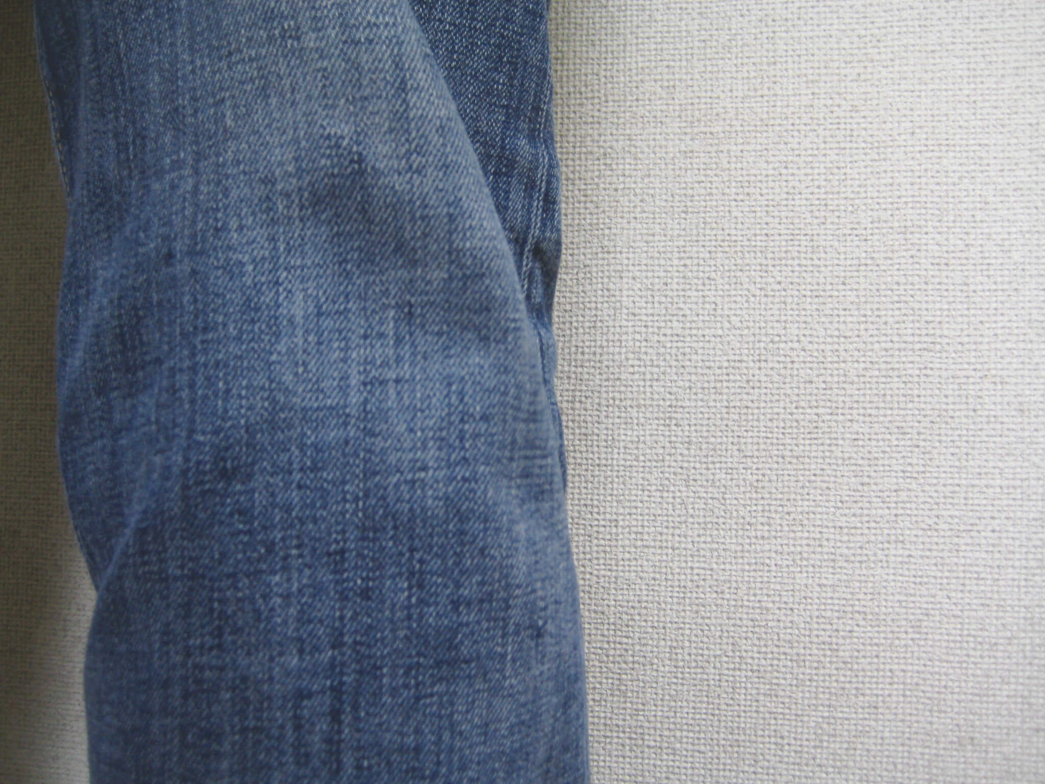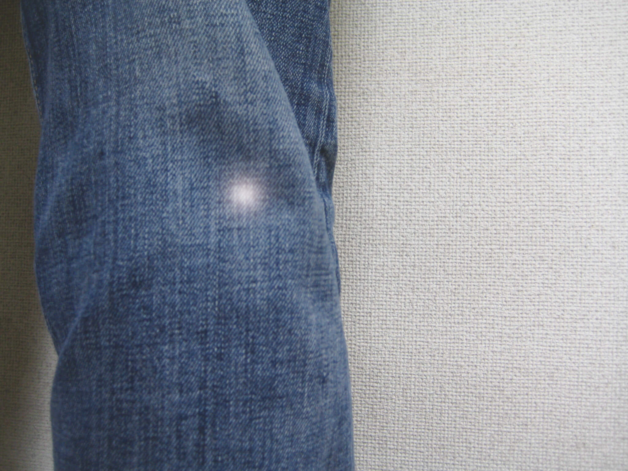 デニム生地です。何らかの薬品が付着したため、色ハゲが起こりました。